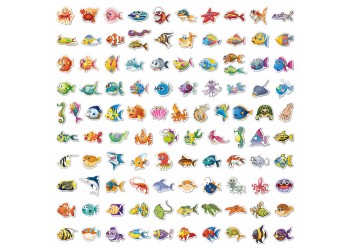 104 stuk Vis Aquatische wezens A031 Cartoon stickers voor kinderen en volwassenen Beloningsstickers Journal Laptop Telefoon Stickers