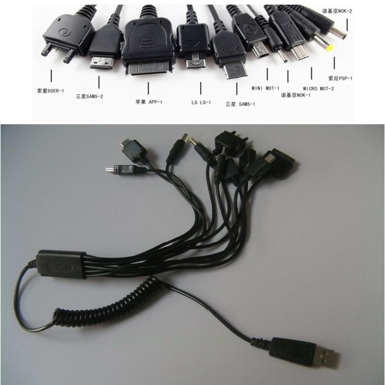 1 x 10 in 1 Draagbare Usb-lader Kabel voor Mobiele Telefoon Ipod