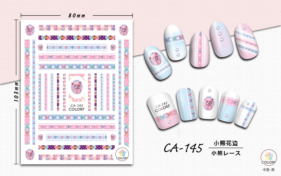 3D Nagel Sticker Coole stickers voor nagel folie Fashion Manicure Stickers Nagels CA-145 beertje bloemenrand