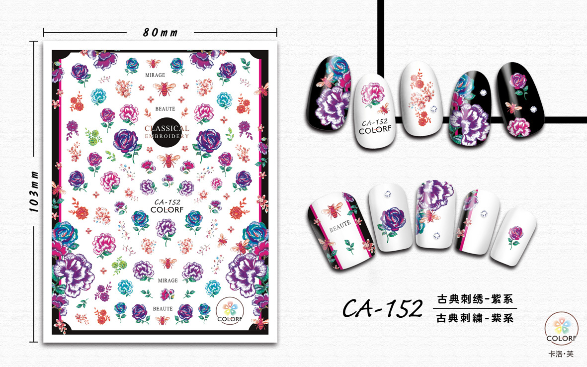 3D Nagel Sticker Coole stickers voor nagel folie Fashion Manicure Stickers Nagels CA-152 Borduurwerk Paars