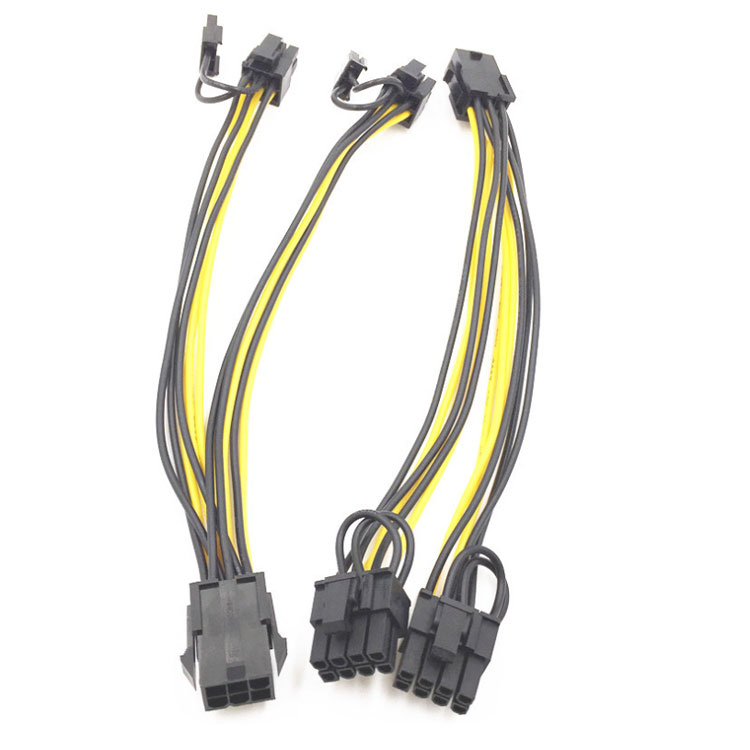 6pin naar 2 * 8pin (6 + 2) pin voor mijnwerker Molex 6 pin PCI E naar 2 * PCIe 8 (6 + 2) pin Grafische videokaart PCI-e VGA-splitter Hub voedingskabel