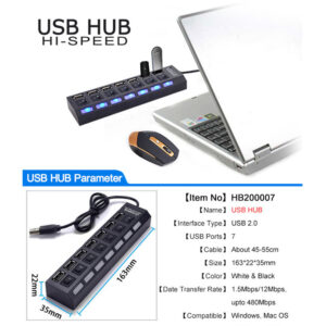 1×7 Poort USB 2.0 HUB