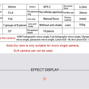 4. APS-C Frame Type, het ondersteunt werken met Mirrorless Camera ‘S en biedt de 90mm equivalent brandpuntsafstand, die is zeer ideaal voor macro schieten, zoals insect fotografie.