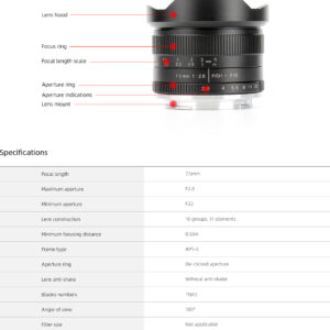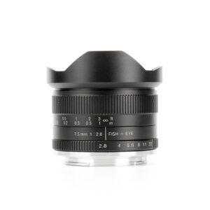 De 7artisans 7.5mm F2.8 is een ultragroothoek fisheye-lens met volledige handmatige bediening. Het optische systeem bestaat uit 11 elementen in 10 groepen. Het is ontworpen voor camera’s met APS-C-sensorformaat. Met een beeldhoek van 180 produceert deze lens een dramatisch gebogen perspectief dat rechte lijnen buigt en de afstand tussen onderwerpen overdrijft. Het stelt iemand in staat om het geheel van een enorm onderwerp zoals een gebouw of de oceaan vast te leggen, waardoor nieuwe mogelijkheden en verrassende resultaten worden geopend. Deze lens kan ook worden gebruikt voor meeslepende panorama-opnamen op volledig scherm en voor het verzamelen van VR-materiaal.