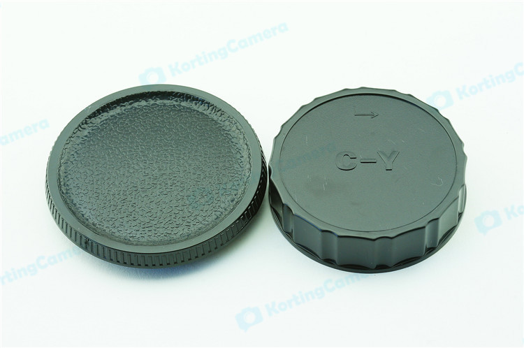 een lens achterdop + een camera bodydop (2 stuk) voor alle objectieven en camera met een Contax Yashica CY mount