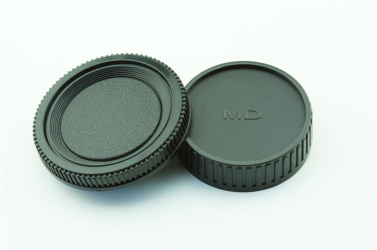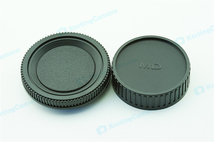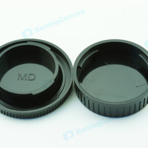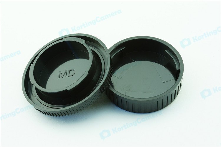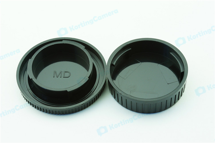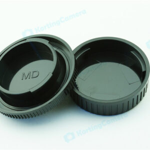 een lens achterdop + een camera bodydop (2 stuk) voor alle objectieven en camera met een Minolta MD mount