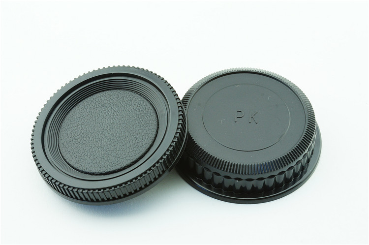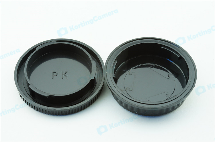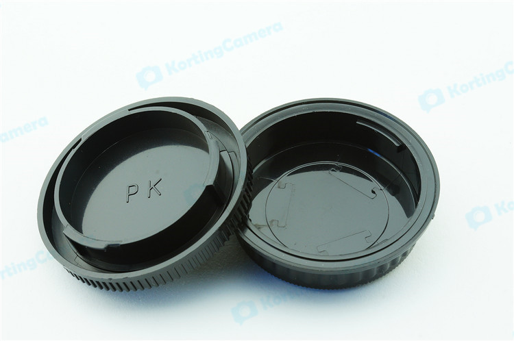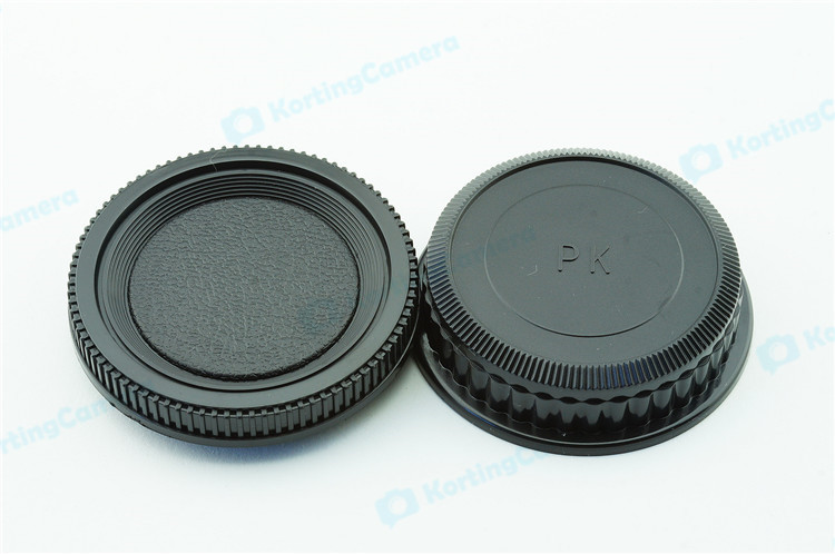 een lens achterdop + een camera bodydop (2 stuk) voor alle objectieven en camera met een Pentax PK mount