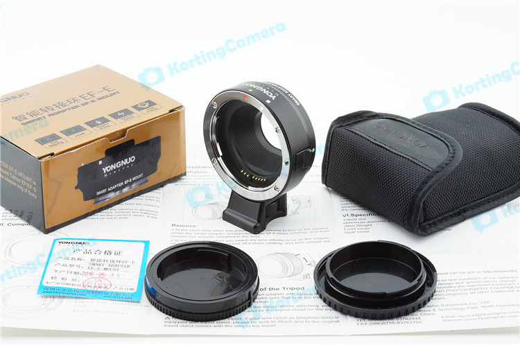 De Yongnuo EF-E smart adapter maakt het mogelijk om Canon EF en EF-S objectieven op een Sony E mount systeemcamerabody te kunnen gebruiken. De smart adapter wisselt alle elektronische gegevens uit tussen het objectief en de camerabody wat betekent dat automatische functies zoals de scherpstelling en het automatische diafragma gewoon blijven werken. De Yongnuo EF-E smart adapter is aan de onderkant voorzien van een statiefaansluiting waardoor de mount van de camera wordt ontzien tijdens plaatsing op een statief. Met deze slimme adapter kunt u het aantal beschikbare objectieven dat u kunt gebruiken op uw Sony E mount systeemcamera flink uitbreiden.