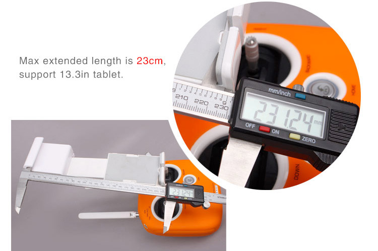 3. Max extended lengte kan bereiken 23 cm, ondersteuning 13.3/10/9.7in pad.