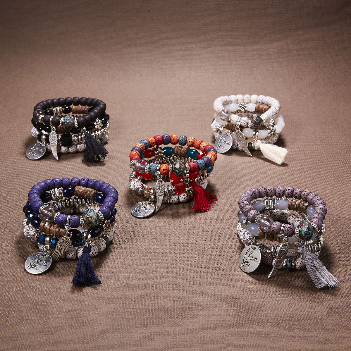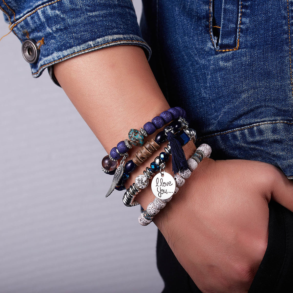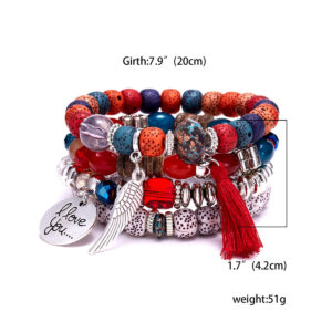 4 in 1 Blauwe Vleugels kwast natuursteen set armband imitatie bodhi kralen Boheemse armband