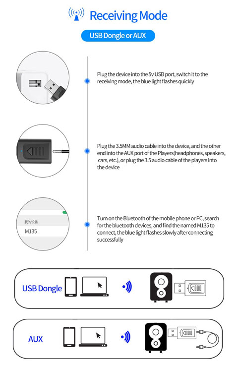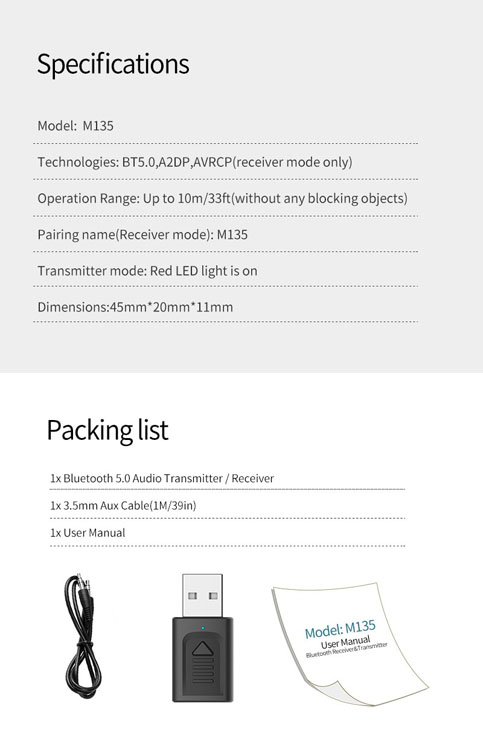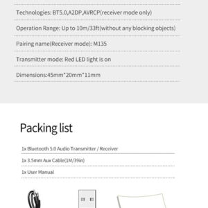 Pairing naam (Ontvanger modus): M135