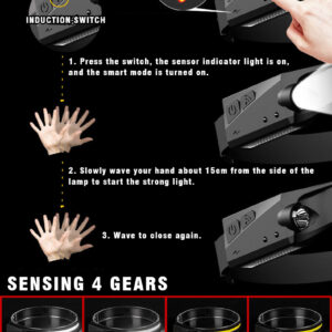 Touch schakelaar: sterk licht-> medium licht-> lange druk en snelle knipperen, sensor schakelaar