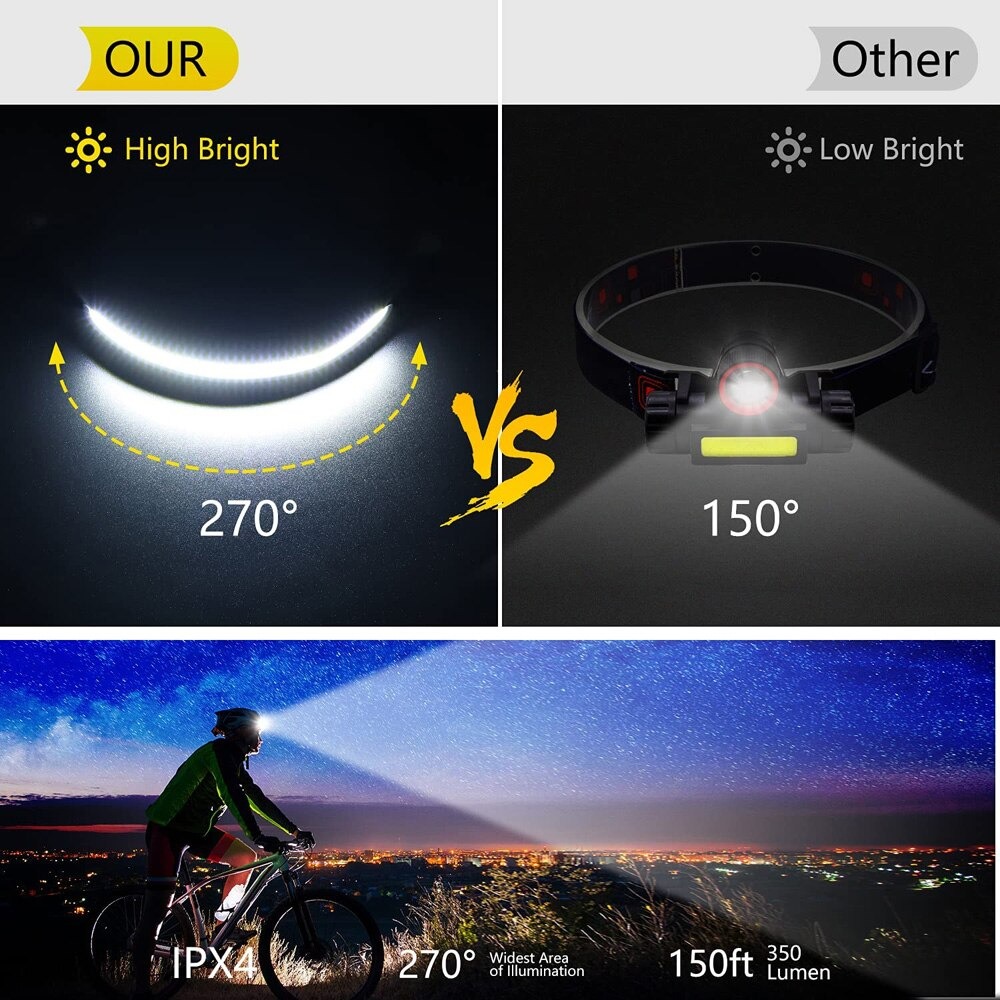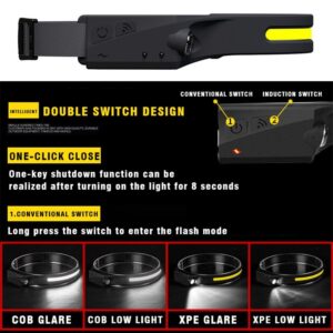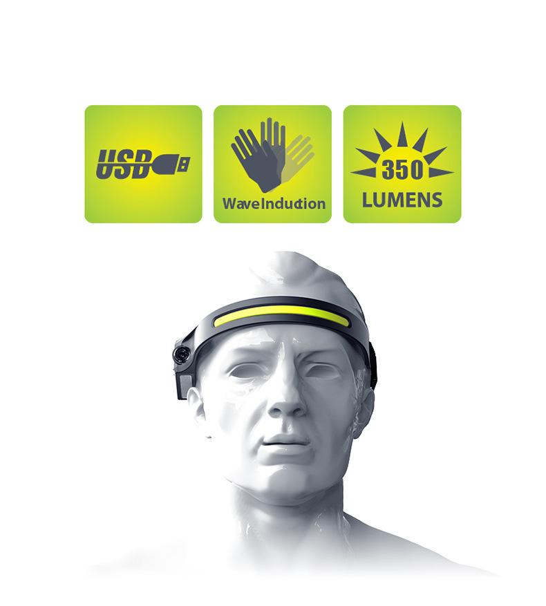 Inductie Koplamp Cob Led Head Lamp Met Ingebouwde Batterij Zaklamp Usb Oplaadbare Hoofdlamp 5 Verlichting Modes Head licht