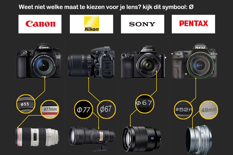 Universeel CPL filter (Polarisatiefilter) voor alle merken. bijvoorbeeld: Canon, Nikon, Pentax, Sony, Sigma, Tamron…