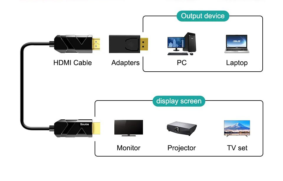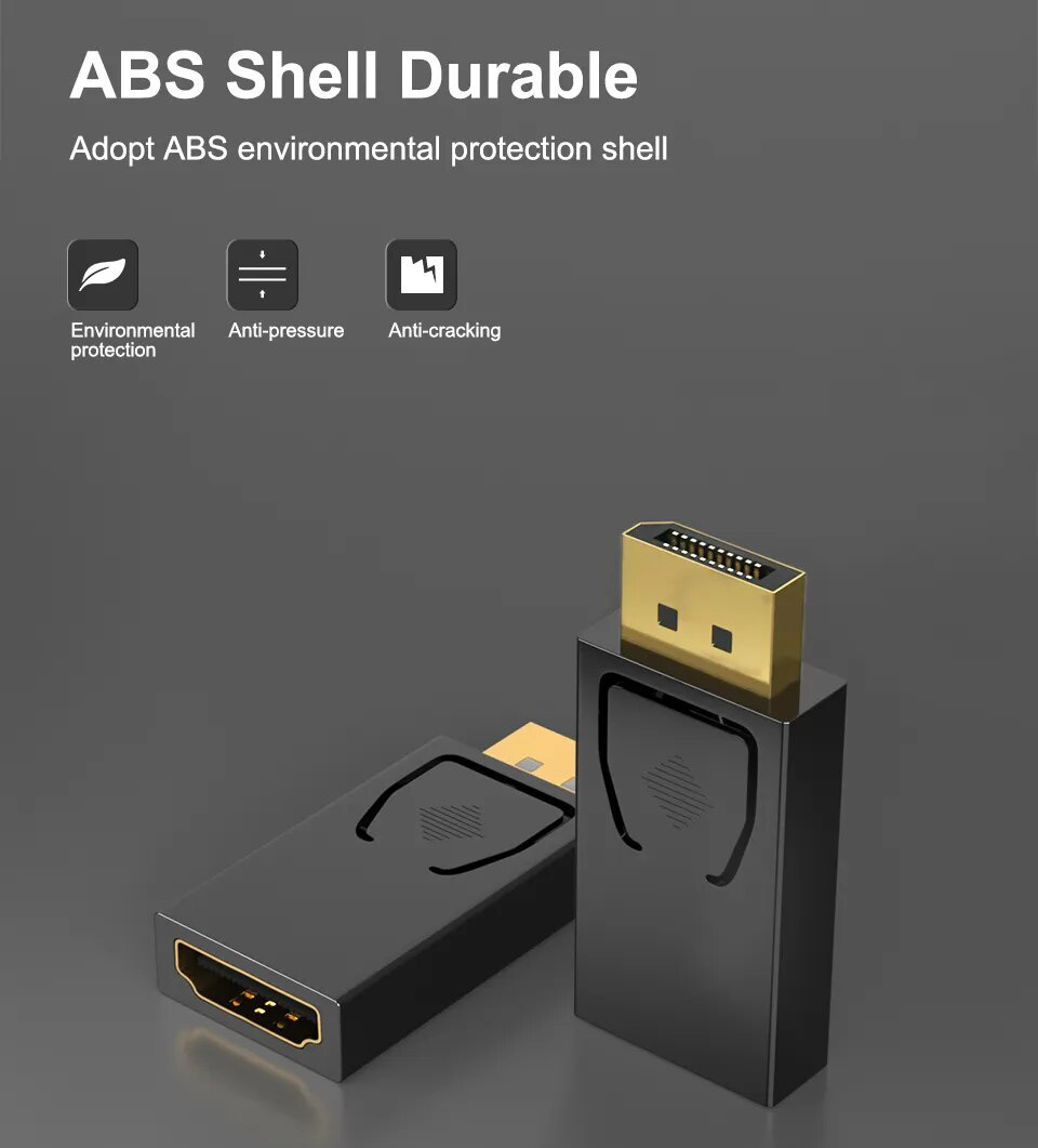 3, Het product heeft een ingebouwde conversiechip, die DISPLAYPORT-signalen kan omzetten in HDMI/DVI-signalen en kan voldoen aan de vereisten van HDMI 1.3 om een bandbreedte van 10.2G te bereiken. Als u de HDMI-mannelijke naar DVI-vrouwelijke kabel of-adapter verhoogt, kunt u DVI-weergaveapparaten aansluiten.