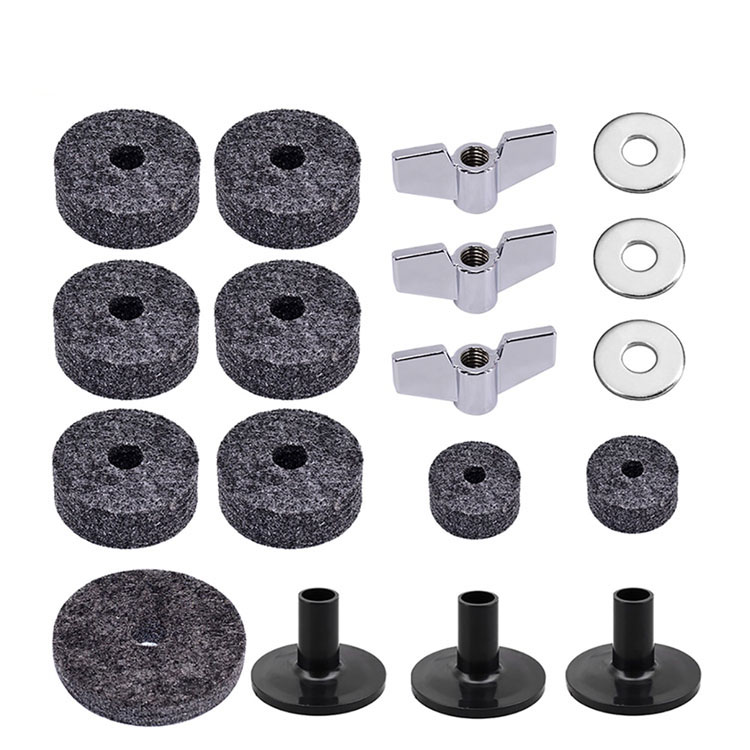 18pcs Drum voelde pad Drum Set Vervangende Onderdelen (3 pcs Cimbaal Mouwen + 3 stuks Vleugel Noten + 3 stuks Ringen + 9pcs Wolvilt Pads)