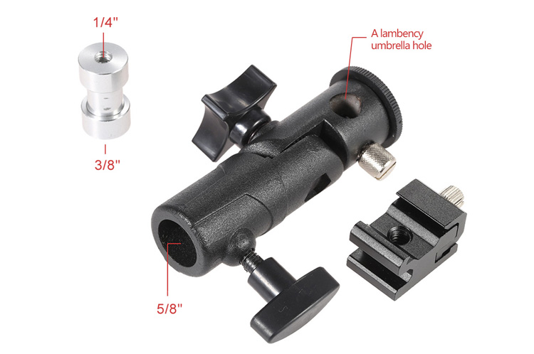 Metalen lichtstatief beugel e-type universele speedlite flitser flitsschoen parapluhouder met 1/4 tot 3/8 schroefdraad draaibare adapter
