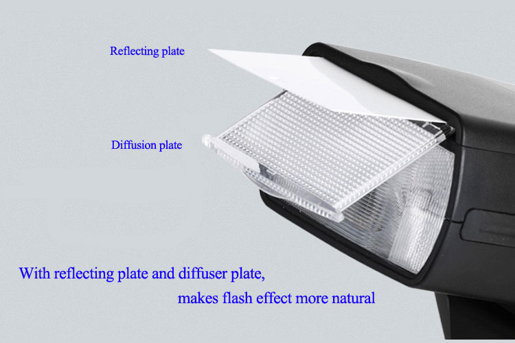 Daarnaast beschikt de fliters over twee slave programma’s en een volledig handmatig programma welke in te stellen is van 1/128 tot full power. De flitskop van de Viltrox JY-680A kan 180° naar rechts en links draaien en een tilt van 90° naar boven. De flitskop kan vrij bewogen worden zonder dat er eerst een knop ingedrukt hoeft te worden. De flitsschoen van de Viltrox JY-680A is volledig gemaakt van metaal. Dit garandeert een solide verbinding. In de flitskop zit een flip-down diffuser en een witte reflectiekaart verwerkt. Als deze gebruikt worden dan zoomt de flitser automatisch naar de groothoekstand. Wordt de diffuser en reflectiekaart teruggeplaatst dan zal de flitser automatisch terugkeren naar de laatst gekozen instelling. Ideaal voor het snel wisselen van zoom naar groothoek.