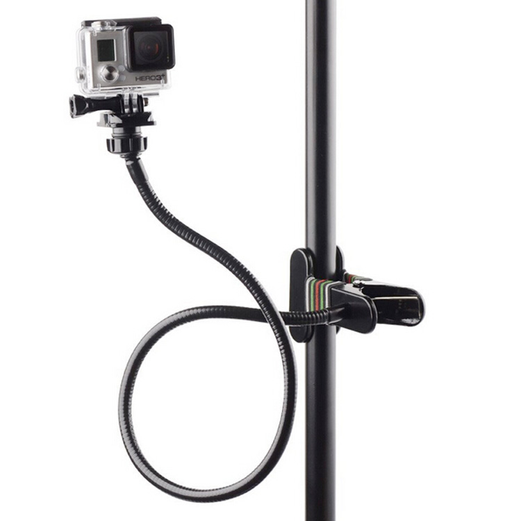 Dual functie klem voor lage en hoge profiel montage: gebruik de klem met de bal en socket adapter naar positie uw GoPro lage down en dicht de oppervlakte is bevestigd, of gebruik de sterke zwanenhals voor extra hoogte en een eindeloze bereik van schieten hoeken.