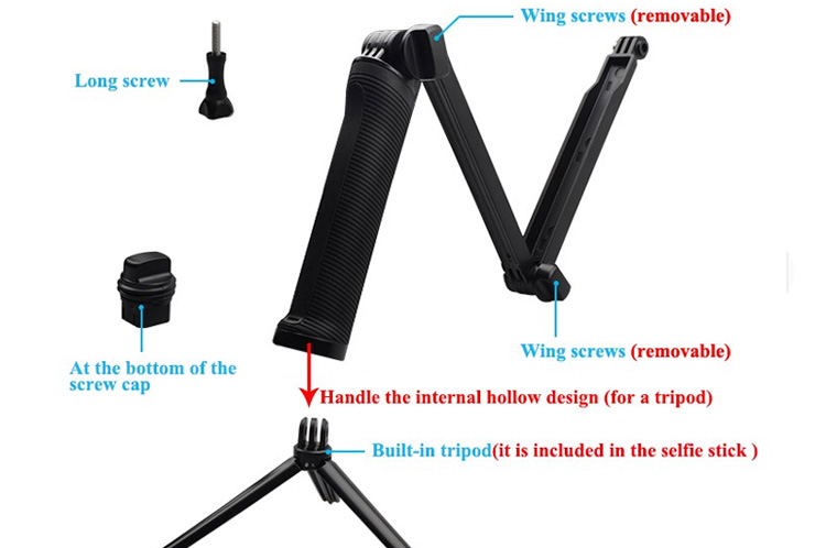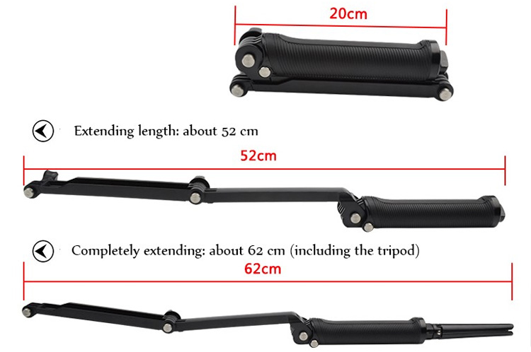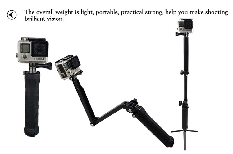 · deze ultra veelzijdige mount worden gebruikt drie belangrijkste manieren: als een camera grip, extension arm of statief. de vouwen arm is perfect voor POV of volg-cam beeldmateriaal, en maakt het gemakkelijk om capture selfies zonder de mount verschijnen in de schot. wanneer losgemaakt van de arm, de handvat verdubbelt als een camera grip. opgeslagen in het handvat is een lichtgewicht, mini statief dat kan worden verwijderd en gebruikt op zijn eigen of gecombineerd met de handvat. breidt 20 ” (50.8 cm), instort tot 7.5 ” (19 cm).