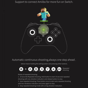 4 niveaus dual HD rumble vibraties, 2 niveaus Turbo modi, Perfect ergonomisch gripgevoel, Ondersteuning Amiibo, Auto sleep & quick wake, soepele en duurzame thumbsticks met stalen ring, Analoge triggers, Gemakkelijke uitwisseling van AB, XY-knoppen, 900 mAh oplaadbare lithium batterij tot 14 uur