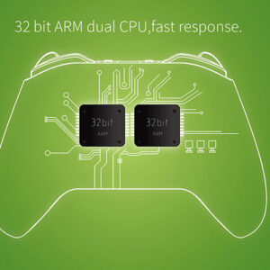 Dual 32 bit ARM CPU biedt snelle gamingrespons en deze controller ondersteunt zowel Bluetooth draadloze als bekabelde verbinding met uw consoles.