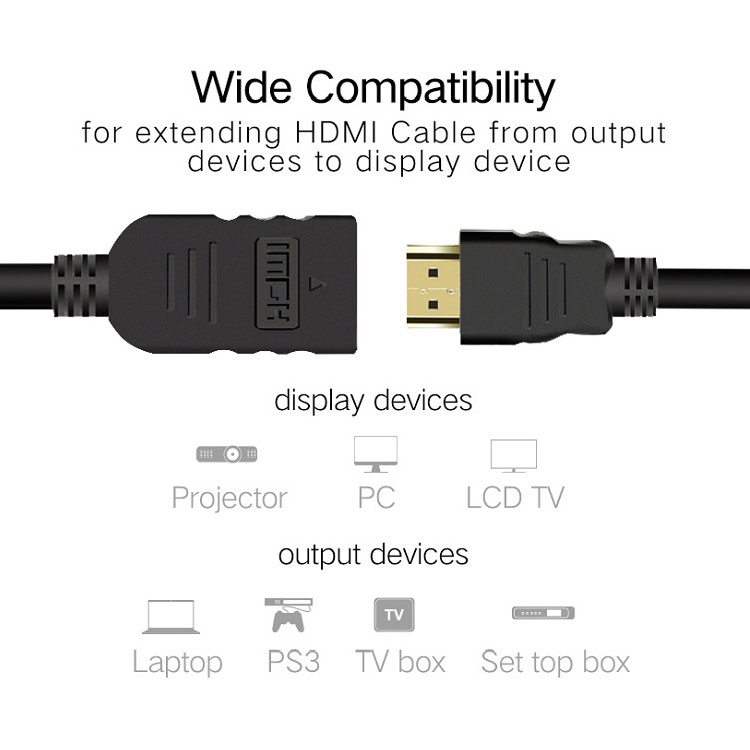 HDMI-verlengkabel mannelijk naar vrouwelijk 0,5 m 3D 1.4v HDMI verlengkabel voor HD TV LCD Laptop-projector