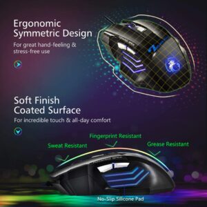 (ERGONOMISCHE GAMER MUIS)Leveren een uiterst comfortabele en precieze ervaring voor Computer Games zoals Fortnite Games, SIMS 4, fallout 4, World Of Warcraft, PUGB, Overwatch, call Of Duty of andere First-Person Shooter. De ergonomische vorm van de RGB PC Gaming Muis is gebouwd voor comfort, past natuurlijk in je hand, de knoppen zijn afgestemd te verminderen klik vermoeidheid