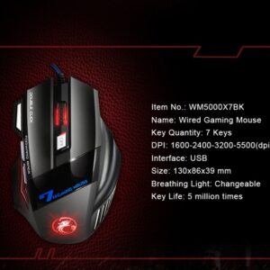 (BEDRADE GAMING MUIS): Gebouwd voor Gaming Computers-Ergonomische Redragon X7 RGB Backlit Gaming PC Muis tot 5500 DPI (instelbaar 1600-2400-3200-5500DPI), de Hoge Precisie Sensor levert Nauwkeurigheid terwijl de Gaming Grade Micro Schakelaars zorgen levensduur, grotere duurzaamheid en extreme responsiviteit, waardoor u een nog grotere rand over uw concurrentie