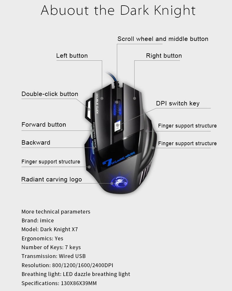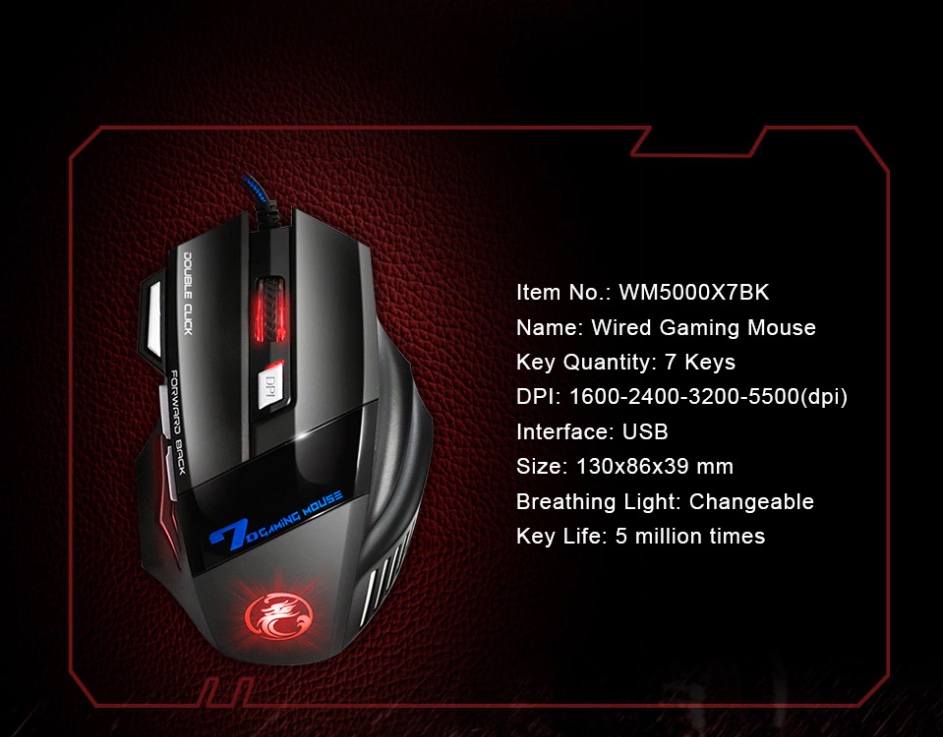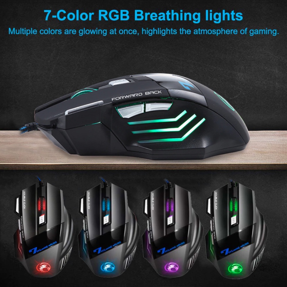 (RGB BACKLIT PC GAMING MUIS)7 verschillende backlight modi. Verschillende DPI komt overeen met verschillende kleuren, zodat u een meer perfecte ervaring