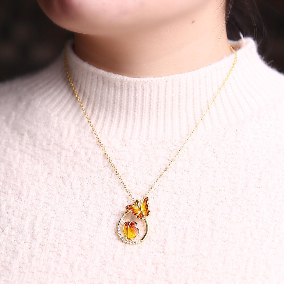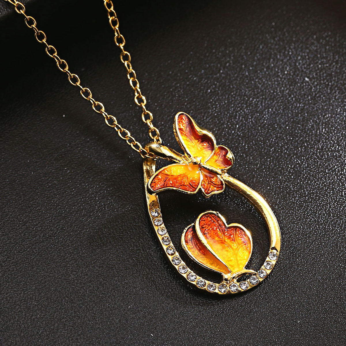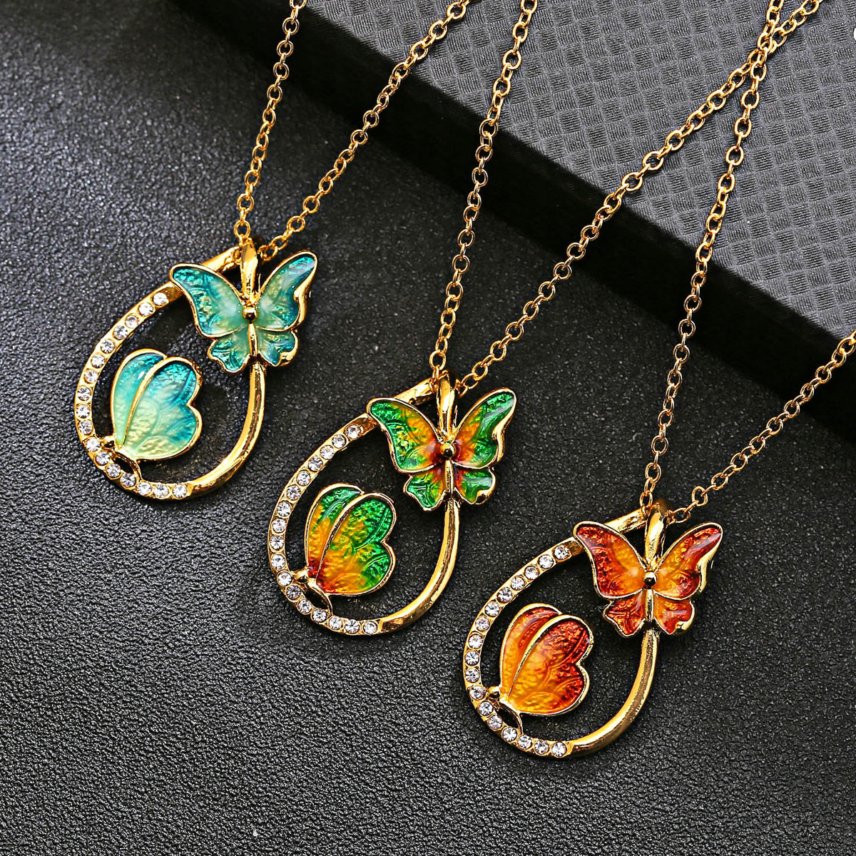 Vlinder schilderij olie ketting mode prachtige druppelvormige kleurrijke sleutelbeen ketting sieraden bruin