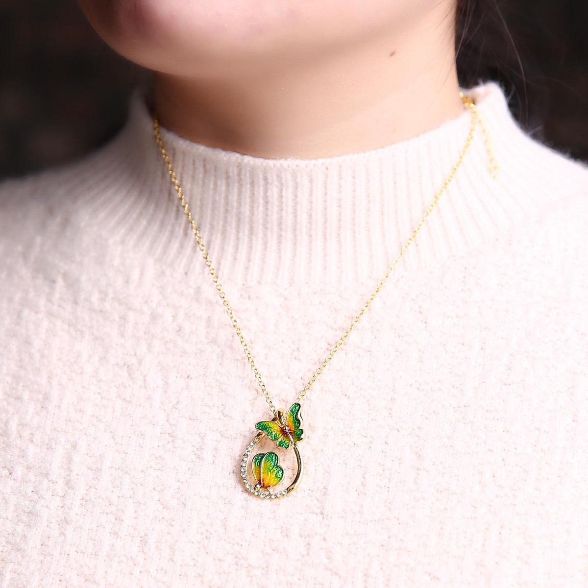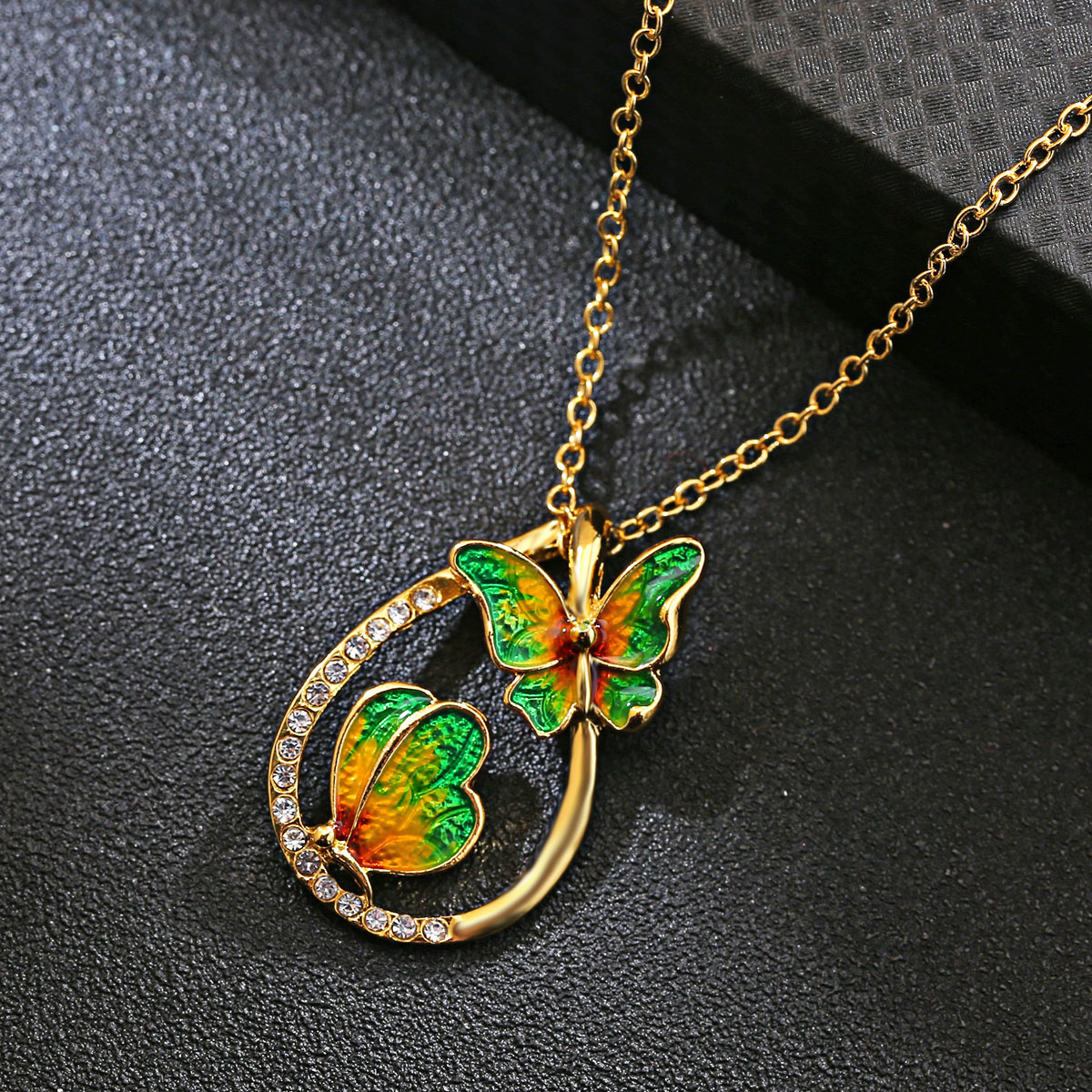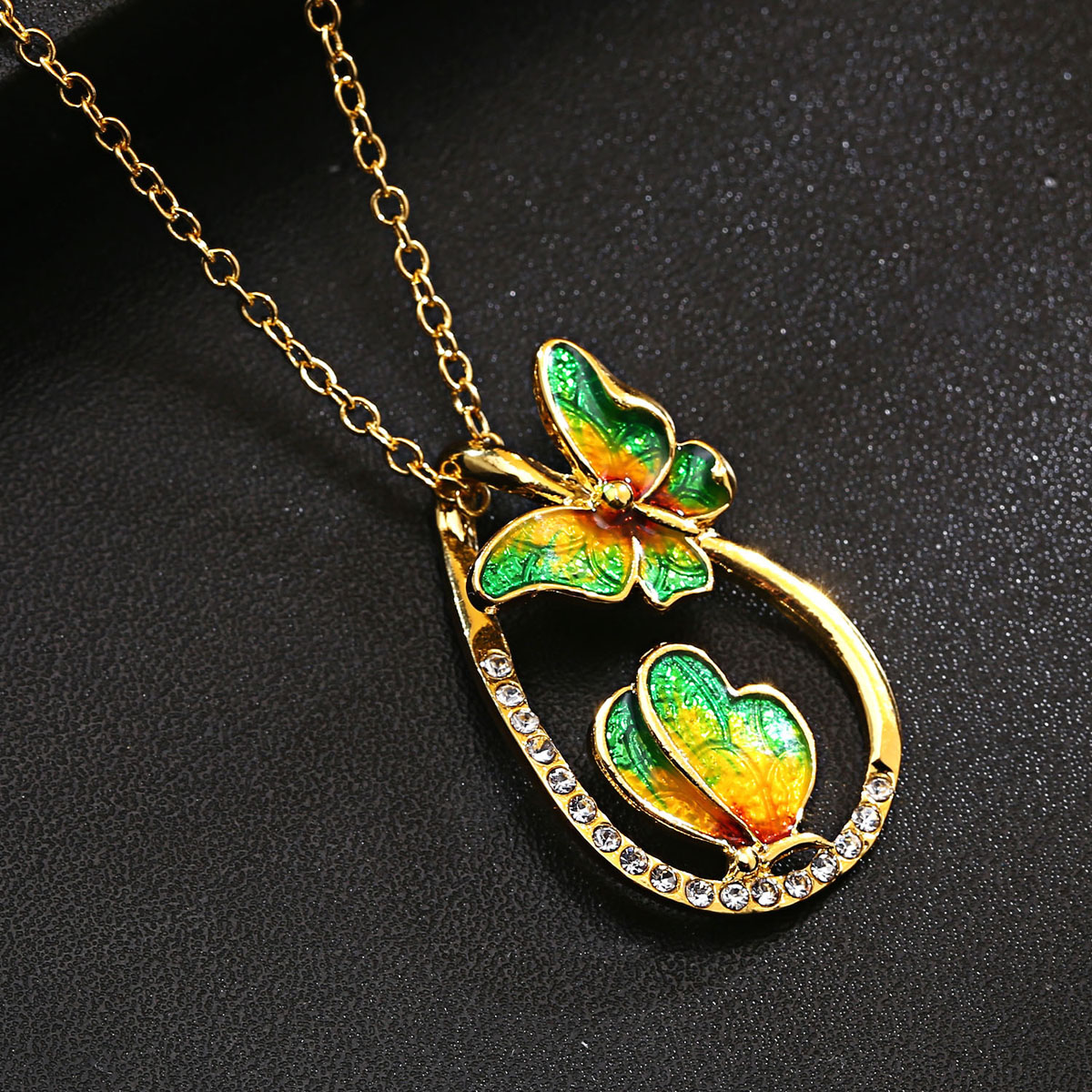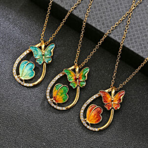 Vlinder schilderij olie ketting mode prachtige druppelvormige kleurrijke sleutelbeen ketting sieraden bruin groen