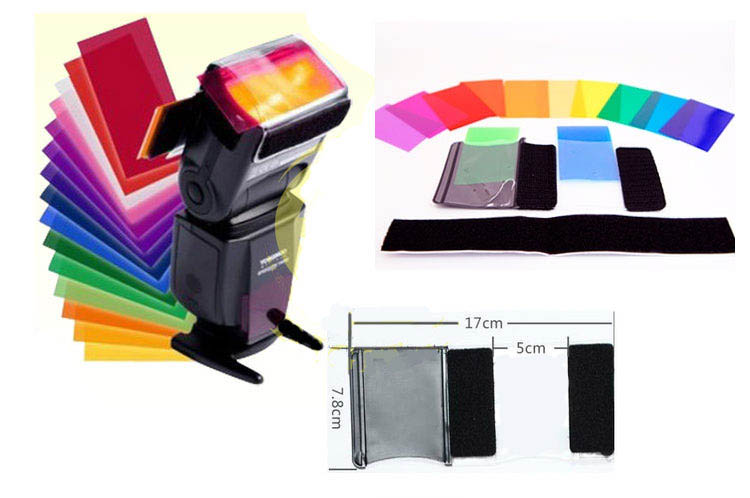 Flitsers Kleurenfilters (12 kleuren) met klittenband bevestiging