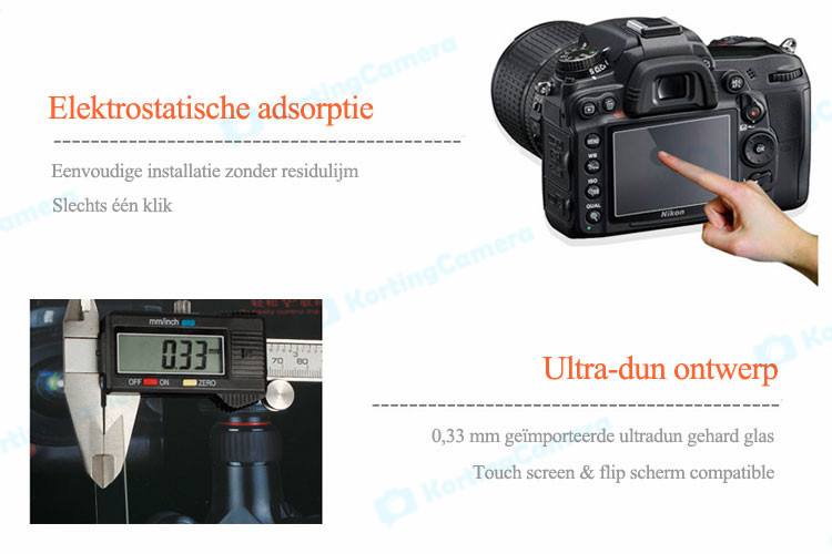 Niets verslaat duidelijkheid van de optisch glas. Niet alleen uw camera LCD-scherm tegen krassen en beschadigingen te beschermen, maar het is ook ontworpen om te werken met touch screen en draaibaar scherm op de moderne camera’s. Deze beschermer maakt geen gebruik van lijm – ze verbinding maken met het LCD-scherm met een sterke silicium lijm voor snelle, eenvoudige en gapless installatie zonder dat de gevoeligheid van het touchscreen. Ze hebben ook ultra dun – slechts 0.3mm