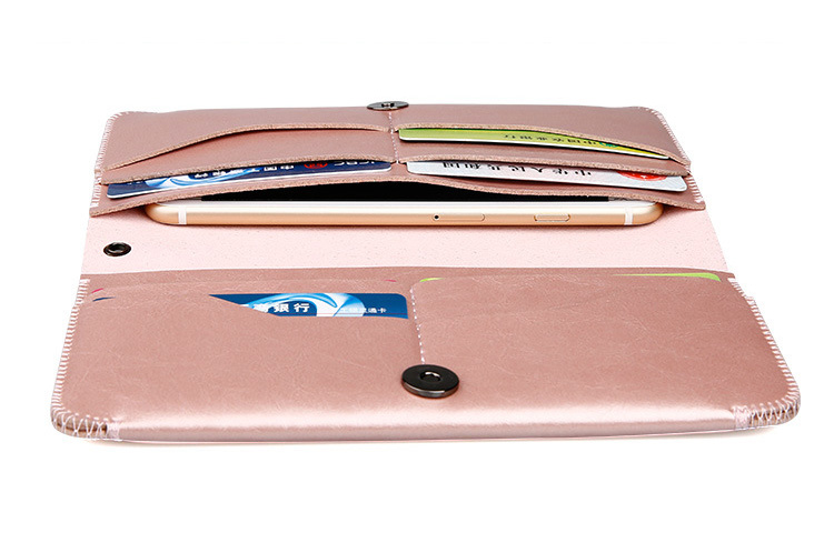 De cover van dit luxe telefoon tasje is vervaardigd van PU-leer voor een langdurige bescherming. Het materiaal heeft de eigenschappen van echt en zacht leder, tevens zorgt het voor optimale grip. De binnenzijde is voorzien van een zachte voering van stof om krassen aan uw mobile phone te voorkomen. De telefoon kan eenvoudig in het hiervoor bestemde vakje worden geschoven. De afmetingen kunt u onderaan deze tekst vinden.
