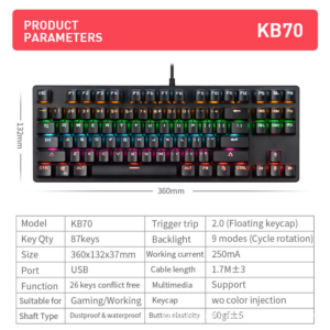 Item Naam: Gaming Mechanische Toetsenbord KB70