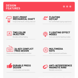 Als gamer is het niet ongewoon eten en drinken naast je pc te hebben staan. Iedereen stoot wel is wat om, gelukkig voor jou is dit keyboard zo ontworpen dat hij tegen vloeistof kan. Zo hoef je na een ongelukje niet gelijk een nieuw toetsenbord te kopen.