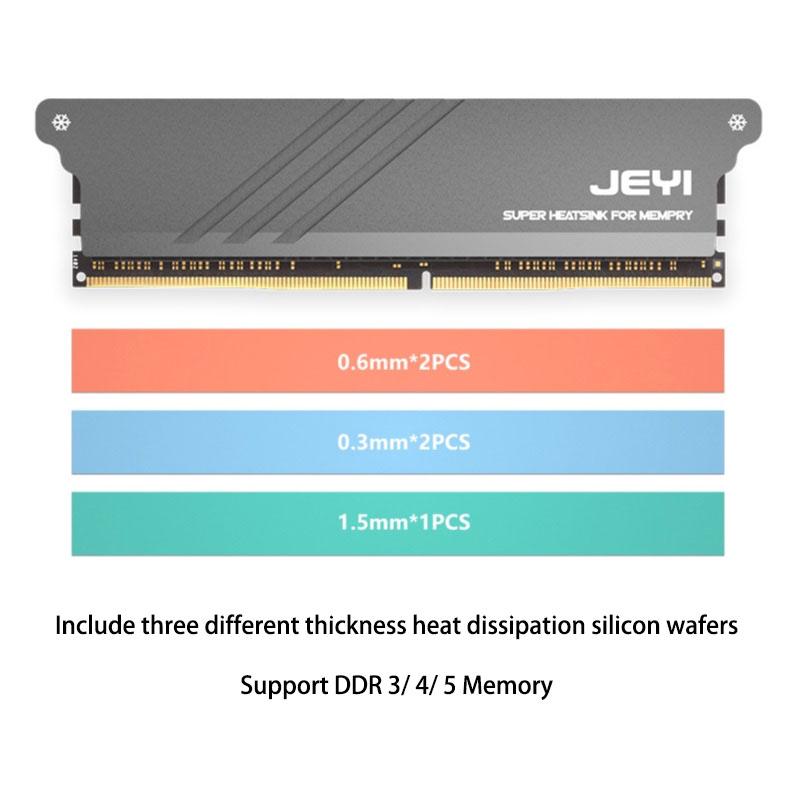 JEYI iMemory-1 RAM Heatsink Radiator Cooling Koellichaam Koeler voor DDR2 DDR3 DDR4 DDR5 Desktop Memory Geheugen Warmteafvoer Pad Frosted geanodiseerd Magnesium Aluminium Legering