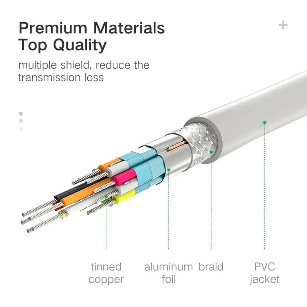 De combinatie van vernikkeld connectors, blote koperen geleiders, en folie en gevlochten afscherming biedt superieure kabel prestaties en zorgt voor uitzonderlijke beeldkwaliteit en authentieke geluid.