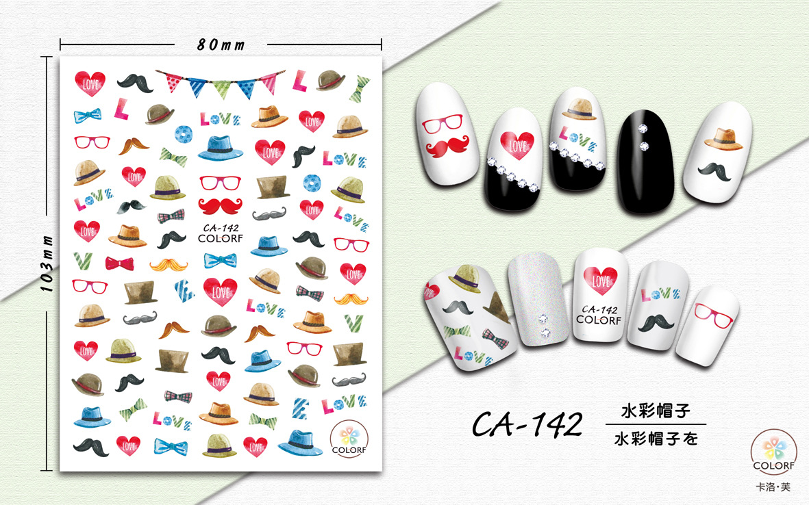 3D Nagel Sticker Coole stickers voor nagel folie Fashion Manicure Stickers Nagels CA-142 Hoed