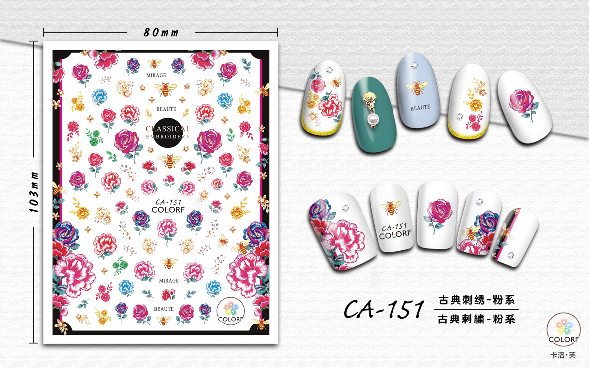 3D Nagel Sticker Coole stickers voor nagel folie Fashion Manicure Stickers Nagels CA-151 Borduurwerk Roze