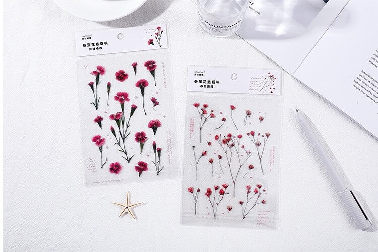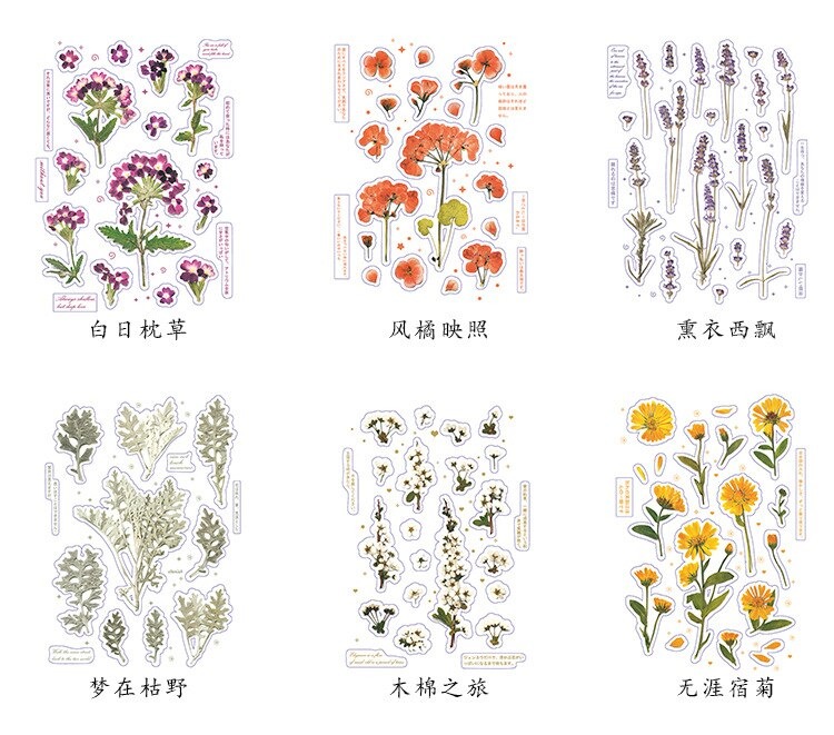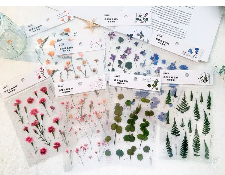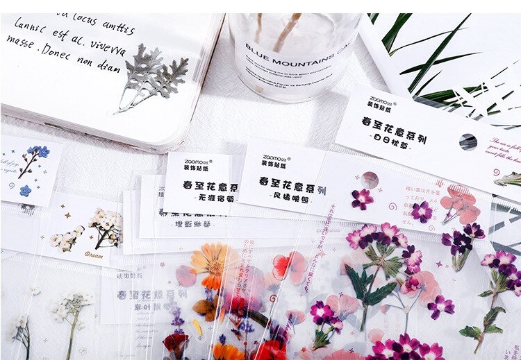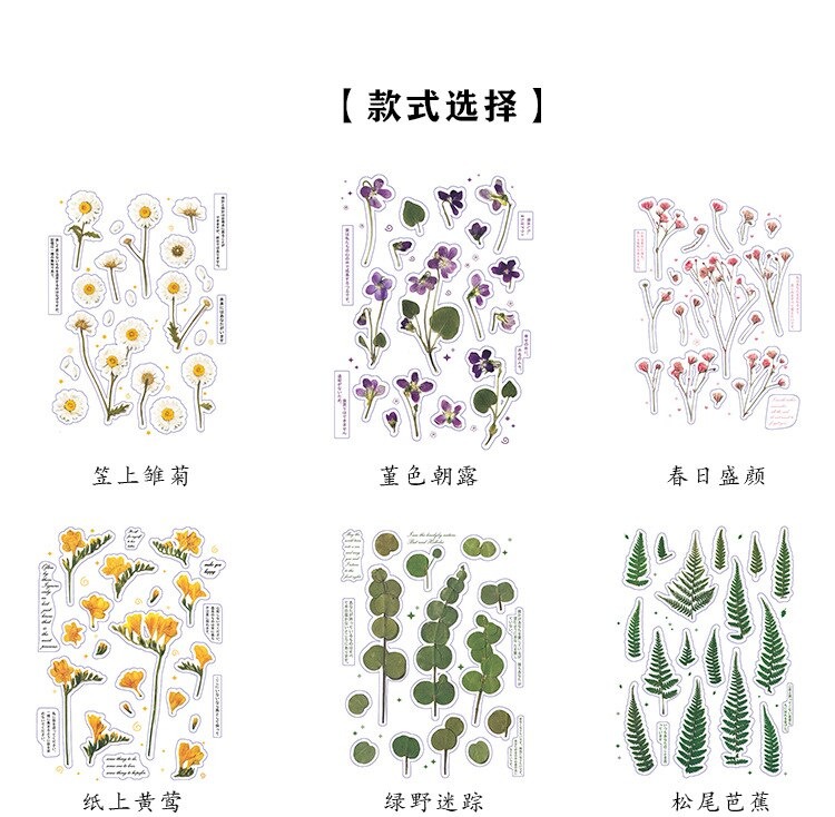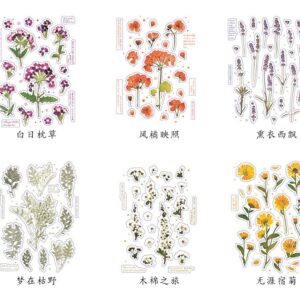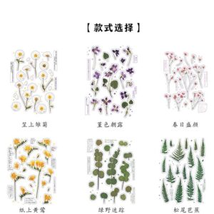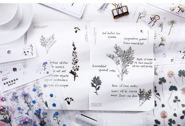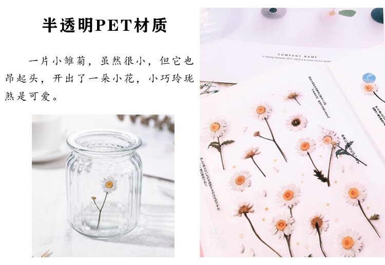 18 stuk Ontwerpen Natuurlijke Daisy Clover Japanse Woorden Stickers Transparante Pet Materiaal Bloemen Bladeren Planten Deco Stickers