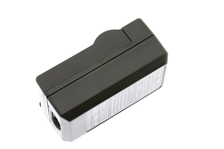 Oplader gemaakt voor NB-10L. Een rood indicatielampje geeft aan dat de accu wordt opgeladen, een groen lampje dat de accu volledig opgeladen is.