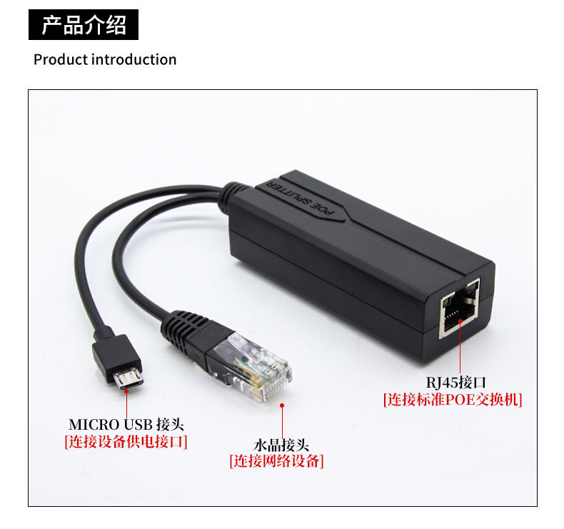 1. 48V standaard POE-splitter, gebruikt met een POE-schakelaar, kan gemakkelijk de signaaloverdracht en voeding van gewone IP-camera’s aan.
