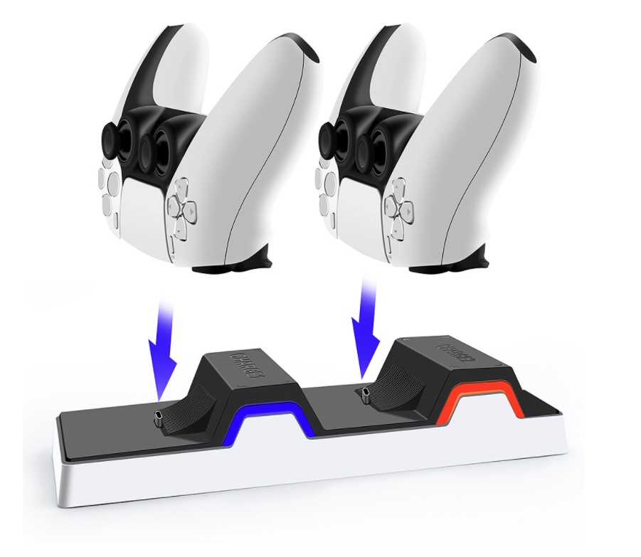 Snelladende dubbele oplader voor PS5-controllers.
