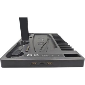 Ons universele PS5 console dubbele laadstation met twee laadpoorten laadt tegelijkertijd je PS5 controller op, waardoor je tijd bespaart! De verticale beugel ventilatorkoeler zorgt ervoor dat je PS5 effectief gekoeld kan worden. Een HUB en een USB poort zijn ontworpen met krachtige laad uitgangen voor geweldige prestatieverbeteringen Dit PS5-accessoire is je beste keuze!