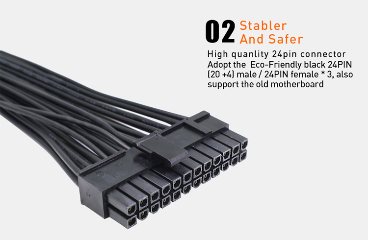 Uitgevoerd met 20+4 ATX connector, universeel voor elke ATX voeding met zowel 20 Pin als 24 Pin connector