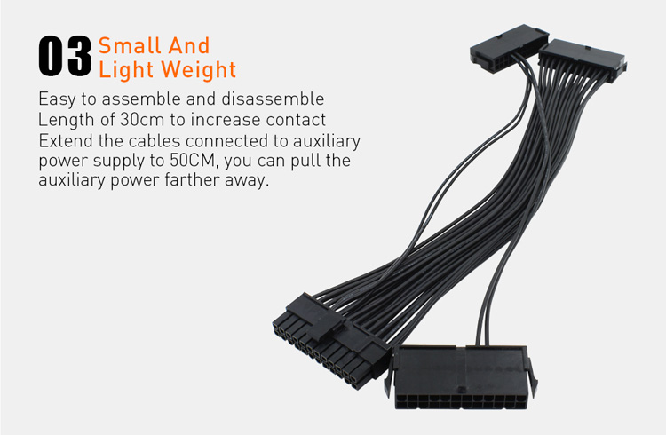 De 30cm kabellengte maakt het makkelijk de 2de voeding te (ver)plaatsen in de Mining Rig
