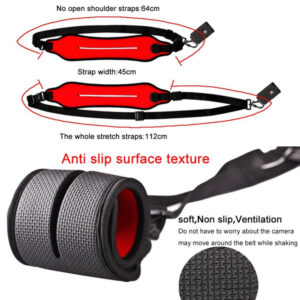 Deze camerariem is gemaakt van ballistisch nylon voor extreme duurzaamheid, is ontworpen voor buitenopnamen en kan uw camera beschermen als u onderweg bent en als u buiten op pad gaat. Het past op de meeste spiegelreflexcamera’s die er op de markt zijn. Er is een snelkoppeling voor een statief met 1/4 schroefdraad om de camera aan te sluiten op elk apparaat met een 1/4 schroef. Comfortabel in gebruik. De riem past een ergonomisch ontwerp toe en het gewicht wordt gelijkmatig verdeeld via het schouderstuk.