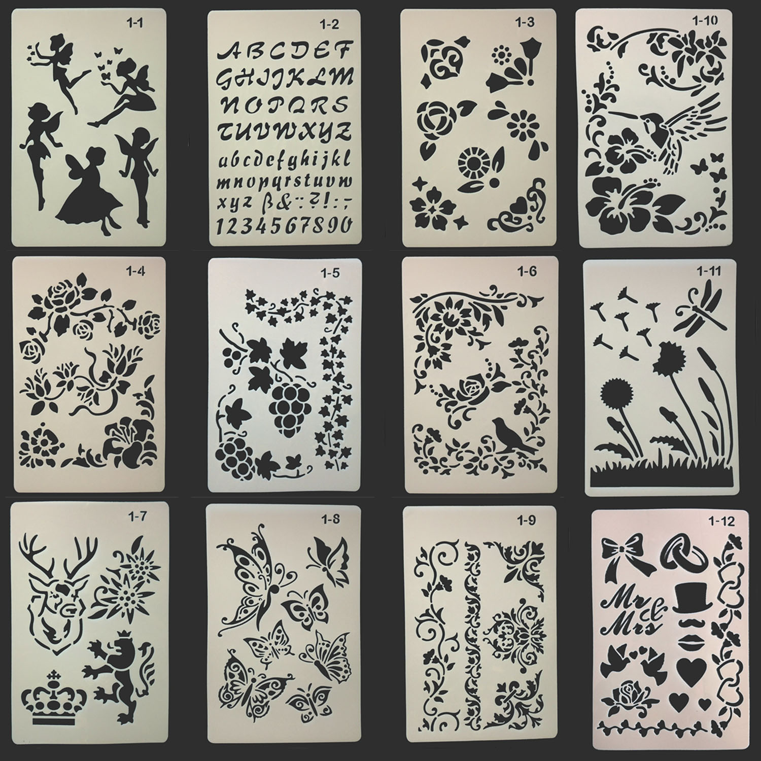 12 in1 Scrapbooking Tool Kaart DIY Album Masking Spray Geschilderd Template Tekening Stencils Laser Cut Template Schilderen Scrapbooking Embossing Stempelen Card